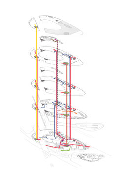 The brief by the Solomon R. Guggenheim Foundation seeks a visionary design for a proposed Guggenheim Museum in Helsinki, capital of Finland. Conceived from the intrinsic connection between the Nordic and Nature, Guggenheim Nord emerges from our arboriculture studies on the native Finnish Silver Birch. Its growing cycle involves the expansion of its outer layer, while the core – with no living cells – becomes its supporting structure. This core, structurally indispensable to the tree, exists devoid of life. We have applied this analogy to Eteläsatama; while indispensable to the city, it exists in a state of uncertainty; marginalized as Helsinki grows and evolves. The core of the building is a new public exhibition space; an open building for an open city. providing an infrastructure for Helsinki’s people, arts and education to thrive.